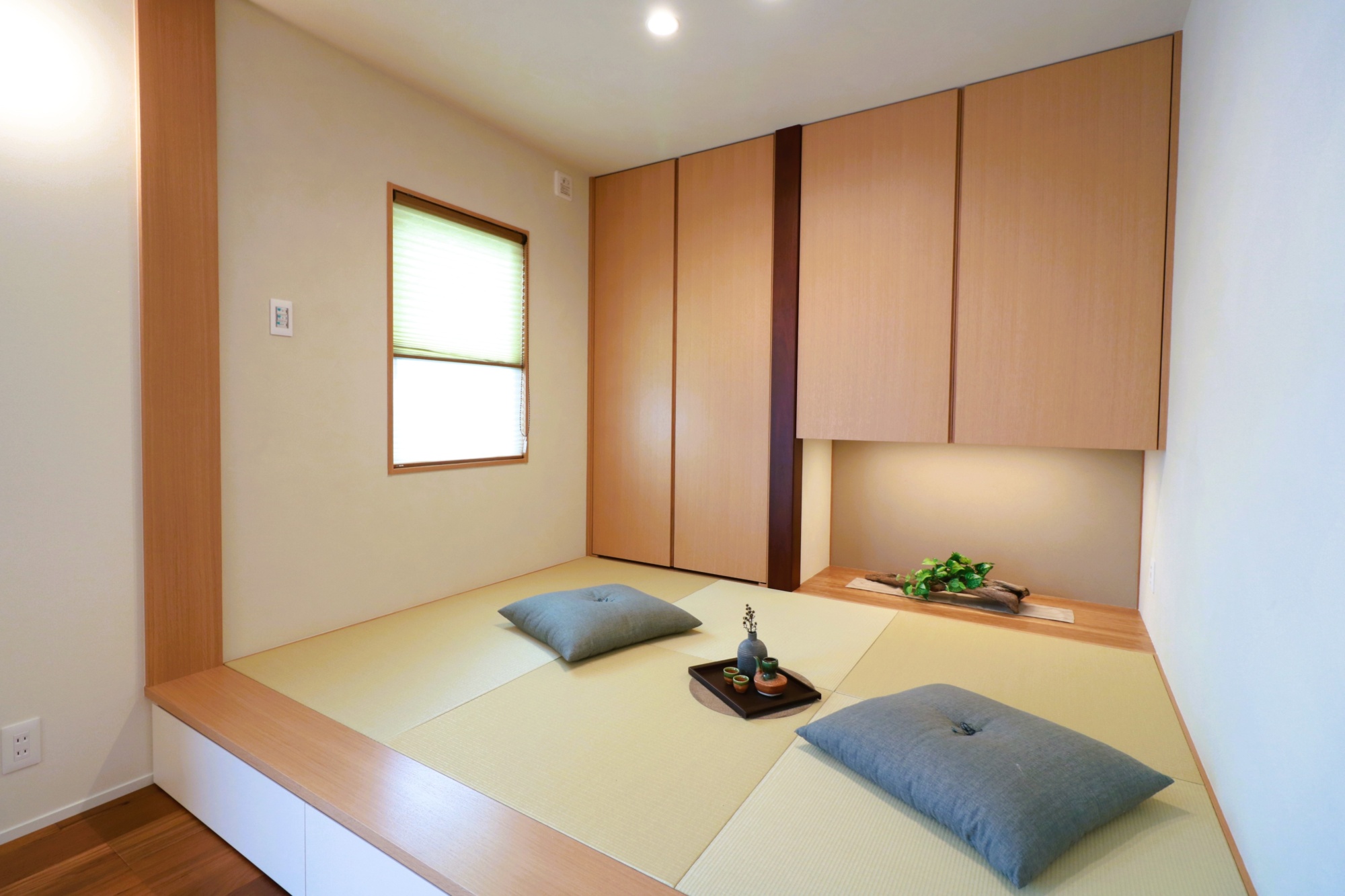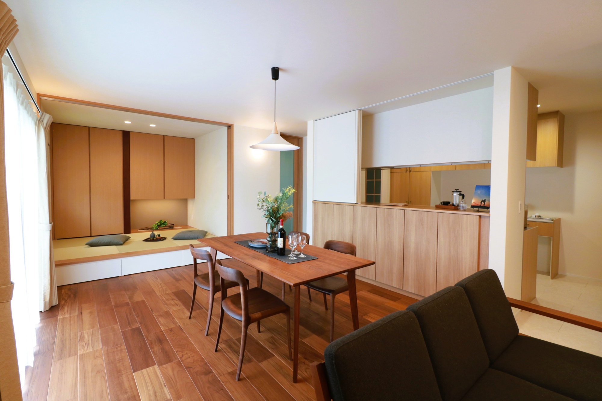 リビングとつながる小上がりの和室は、家族が自然に集まる心地よい空間。