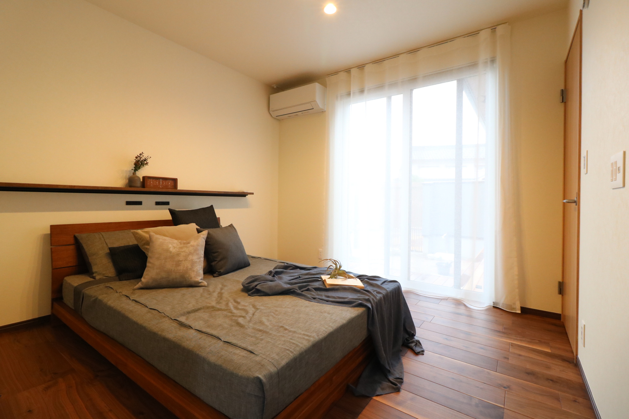 中庭に面した寝室は、外の視線を気にせず、穏やかな時間を過ごせる