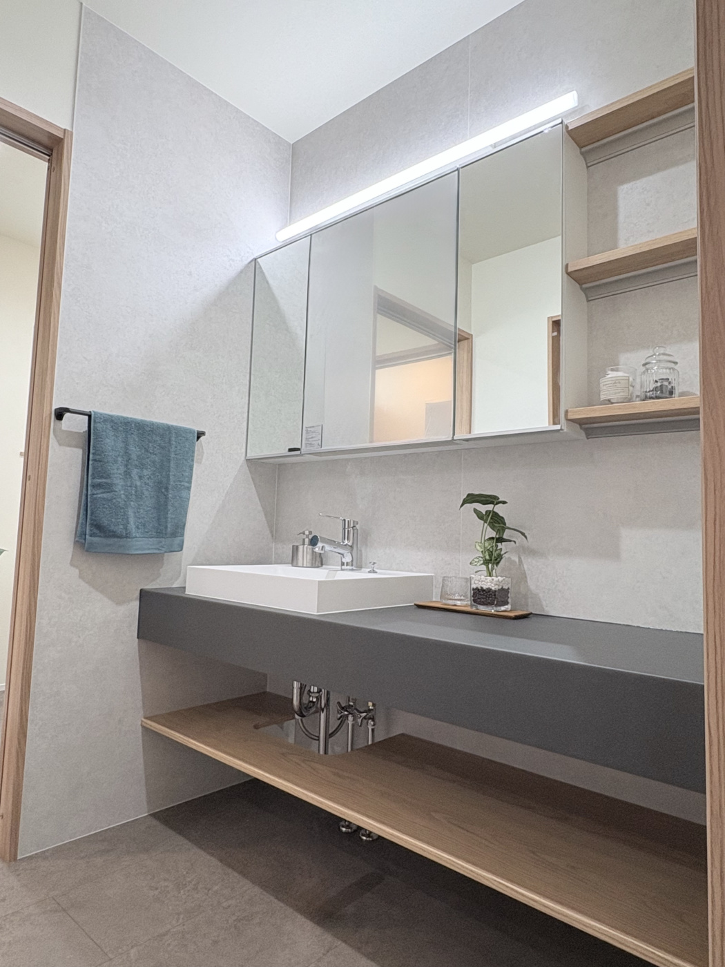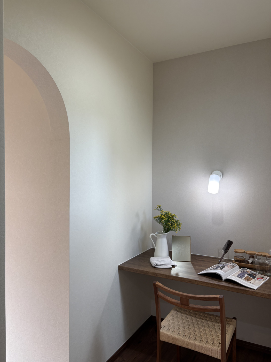 併設したパウダーコーナーでは、朝の身支度やリラックスタイムを、