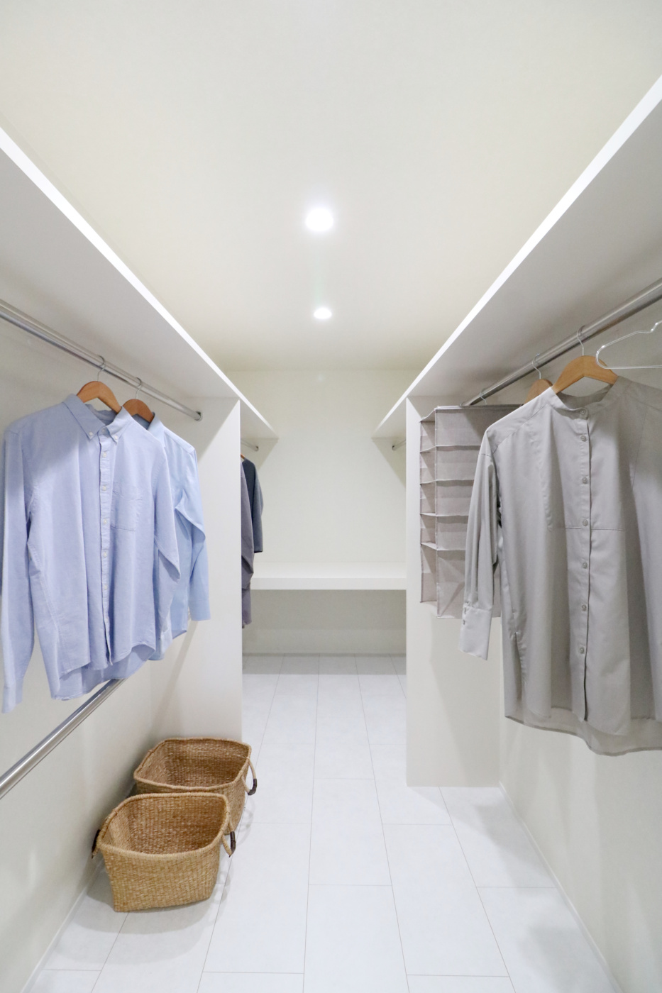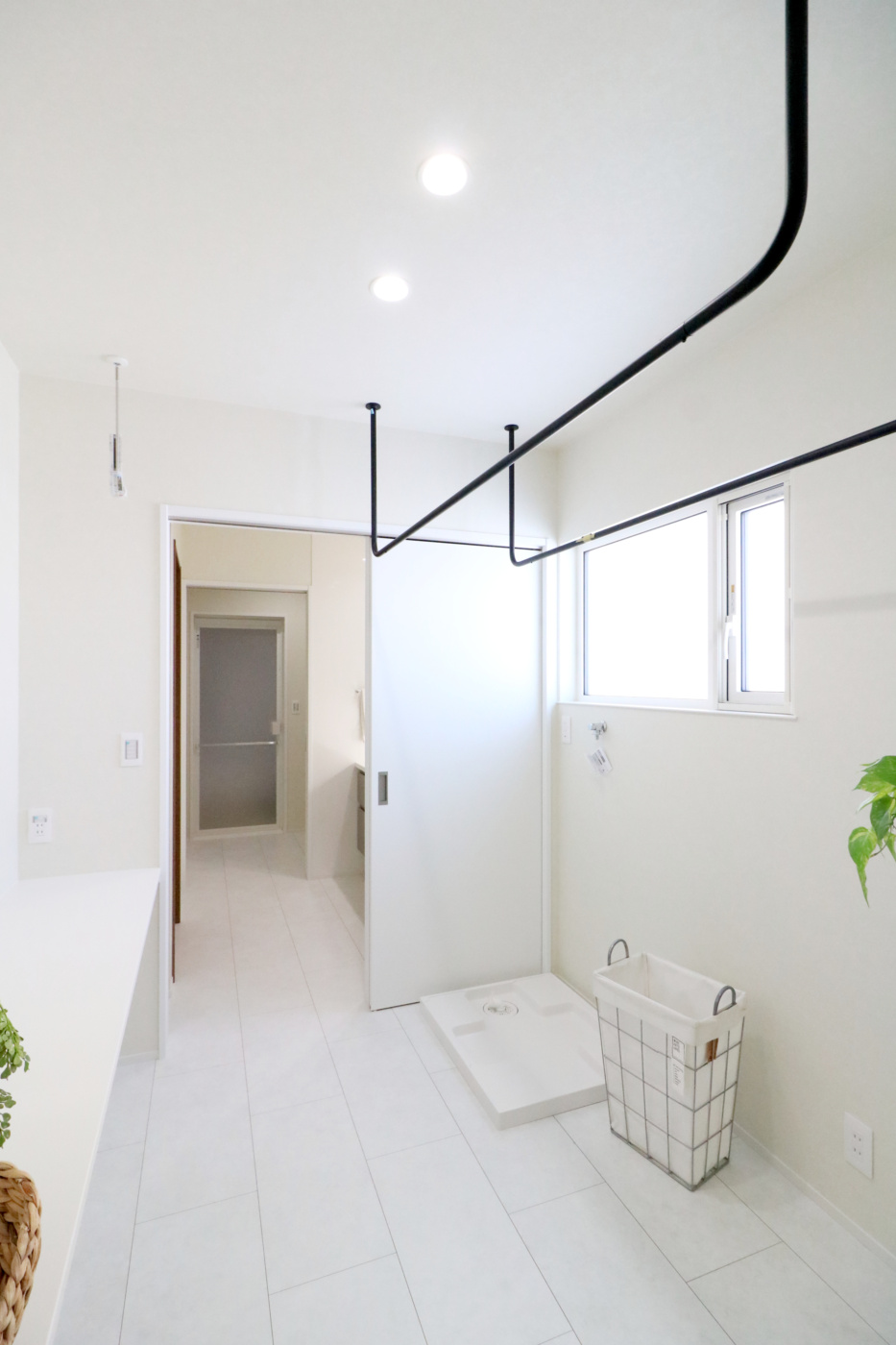 脱衣室からユーティリティ、ファミリークローゼットまでを一直線につなぎ、
